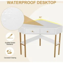 Featuring special corner design, our corner desk can save more space than traditional tables. In the corners of different rooms, our wall writing desk can effectively use the limited space to create a private study space. Of course, you can also place it on other occasions according to your needs. Meanwhile, the study workstation has 2 drawers and open shelves, which allows you to freely sort items. The overall structure is made of sturdy material, so that the weight capacity of each part has been greatly improved. 4 metal legs also enhance overall stability. With the help of convenient rounded handle and smooth sliding rails, you can pull the drawers inside or outside more effortlessly.