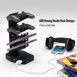 Controller Stand with 4USB Charging ports facilitates charging phone, tablet, etc.