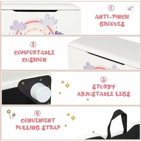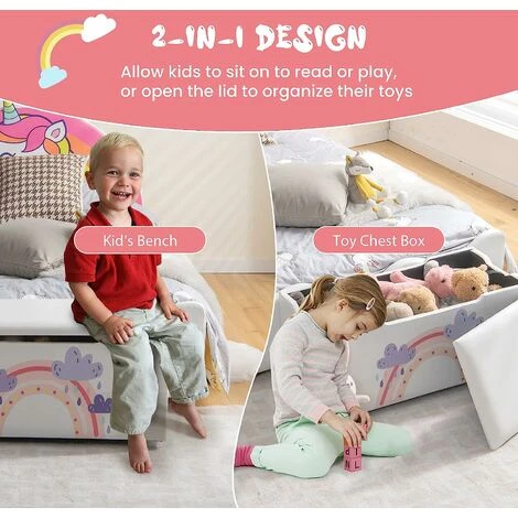 Are you sick of the cluttered toys in kid’s room or living room? Collect them all and stow away in the large capacity toy chest! Then you can close the lid to keep these sundries out of sight. By the way, there are grooves on the side panels to prevent finger-pinching. With the lovable patterns, kids will cherish the toy box and develop good habit of organizing. Furthermore, the toy organizer is also fully upholstered, with soft and resilient sponge to give kids optimal seating comfort. It can be used in the living room, bedroom or entryway, being a convenient bench while provide functional storage. Thus, add this toy storage bench to the gift list for your angel on Christmas, Thanks-giving, birthday or other events.