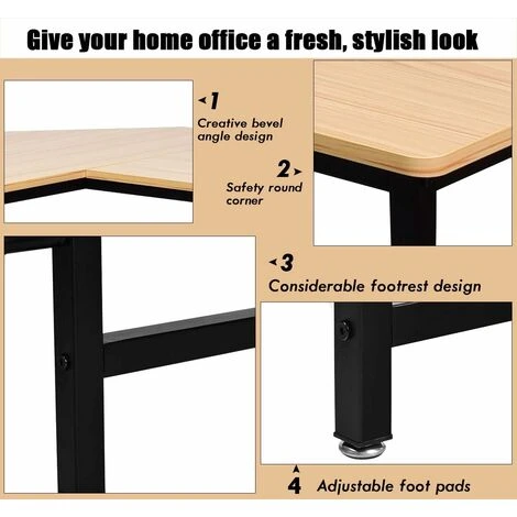 Our L-shaped computer desk gives you a spacious working space and improves your office efficiency! This corner office desk has a large office countertop to meet your fully needs with different working items. At the same time, high quality particle board countertop and solid iron frame are durable and stable for a long lifespan. The footpad can be adjusted to protect the ground to a certain extent and adapt to the uneven ground. You can also put it in the bedroom, game room, study room, etc. L-shaped design makes full use of the space, and it has a separate CPU stand, so that CPU does not need to be placed directly on the ground to avoid dampness.