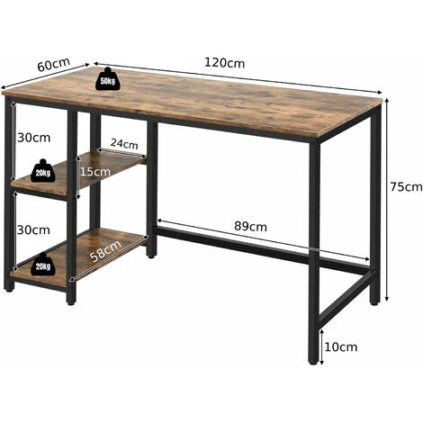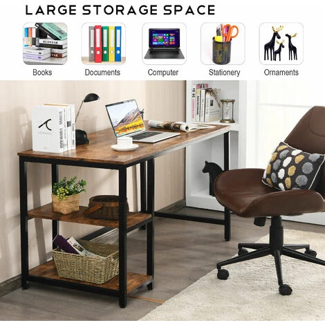 Made of high-quality particleboard and iron, this computer table is sturdy and durable with strong load-bearing capacity. Adjustable foot pads make it stable even on uneven floors. The spacious desktop can keep your laptop, lamp, tea cup and all office supplies in order and easy to access. In addition, this table is also designed with 2 open shelves for storing your books, documents and equipment. The upper shelf has two height adjustments and can be removed to make more room for your computer tower. This table is suitable for study, bedroom, living room or office to be used as a computer desk, writing desk, game table and office workstation.
