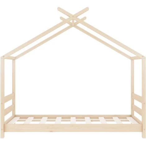 Create the ultimate hideaway in your children’s bedroom with our fantastic wooden bed frame! The bed is smartly designed with a treehouse-style frame where you can hang bed curtains to create privacy for your kid. This wooden bed is also perfect as a reading nook or a playhouse for your child. This bed frame is made of solid pine wood, making it exceedingly sturdy and durable. The strong slats offer the needed support to ensure stability. This bed frame is suitable for a mattress of 70 x 140 cm. Please note: The delivery includes a bed frame only. Mattress and curtains are not included. You can check our shop for the comparable mattresses.