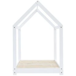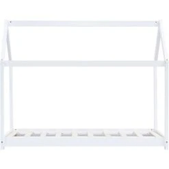 Create the ultimate hideaway in your children’s bedroom with our fantastic wooden bed frame! The bed is smartly designed with a tree house style frame where you can hang bed curtains to create privacy for your kid. It can also be used as a reading nook or a play house for your child. Made of solid pine wood, this bed frame is exceedingly sturdy and durable. The strong slats offer the needed support and are highly comfortable. This bed frame is suitable for a mattress of 70 x 140 cm. Please note that delivery includes a bed frame only; a mattress and curtains are not included. The bed is easy to assemble. You can check our shop for the matching mattresses.