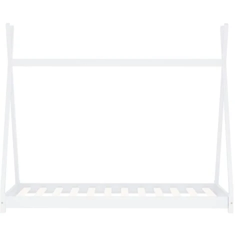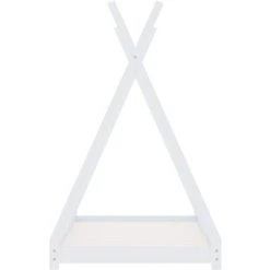 Create the ultimate hideaway in your children’s bedroom with our fantastic wooden bed frame! The bed features novelty crossover framework inspired by the cool tipi style tents where you can hang bed curtains to create privacy for your kid. It can also be used as a reading nook or a play house for your child. Made of solid pine wood, this bed frame is exceedingly sturdy and durable. The strong slats offer the needed support and are highly comfortable. This bed frame is suitable for a mattress of 80 x 160 cm. Please note that delivery includes a bed frame only; a mattress and curtains are not included. The bed is easy to assemble. You can check our shop for the matching mattresses.