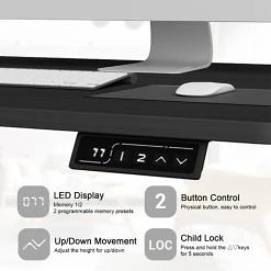 [Memory Electric Height Adjustable] The Standing Desk has an intelligent height adjustment range of 73 to 122 cm,lifting speed of 22 mm/s and low noise(below 50 dB). Desk has LED height indicator and 4 buttons, and the one-button setting memory function can easily record the heights you and your family frequently use, helping you reduce the strain on your waist during long-term work and improve work efficiency.