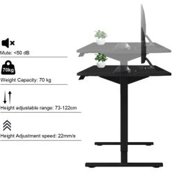 [Rugged and Stable Structure] The Electric Desk is supported by a sturdy metal frame, and the wide T-Shape design is one of the most stable supports. With 4 non-slip screw feet under the table legs, the table maintains good stability even when used at the highest height. The table top is covered with smooth, strong, waterproof laminate. This eco-friendly design makes it stronger than other desks and gives you a great office environment.Maximum weight capacity: 70kg.