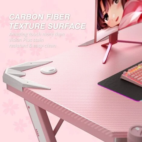 - ăCarbon Fiber SurfaceăThe gaming desk designed for all game players. Carbon fiber textured desktop, smooth touch, textured appearance, scratch-resistant, anti-collision design, and it has better performance of waterproof and sweatproof, upgraded games, and office experience.