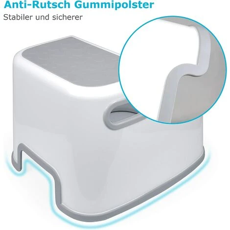 Non-slip The surface and bottom of the children’s step stool are non-slip rubber feet to ensure that the stool can stand firmly, has good friction force, can prevent the stool from slipping and sliding. The baby does not slip.