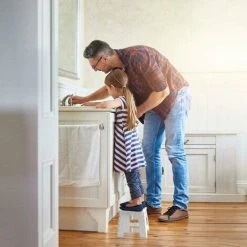 ăSafe stool and non-slipă The footboard has been approved by EN14183 certificate. Features has improved the folding pole. The four super safe rounded corners protect your body from impact. There are rubber feet on the 4 corners of the step to maintain a fixed position and protect against slips and falls. All these designs keep your kids safe. first.