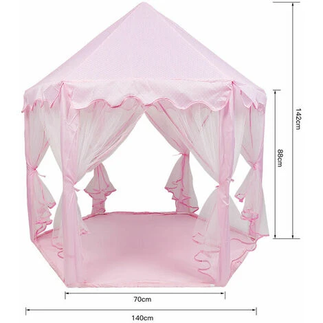 Our princess play tent will bring a lot of fun to your beloved children. Have fun with our play tent! It is suitable for both indoor and outdoor use. This playhouse is made of polyester and it is easy to clean. The mesh will ensure safe monitoring and good air circulation. In addition, this children’s tent can be easily stowed away.