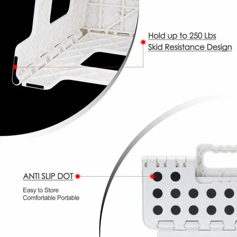 EXCELLENT QUALITY AND SAFETY: Our super tough foldable step stool is made of durable materials for durability. The stool can support a maximum of 113.4 kg. The foldable step deck features a non-slip top, giving you incredible comfort and safety for everyone, including kids and adults.