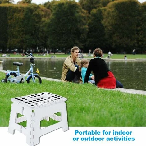 Space-saving and lightweight: folds flat For easy and space-saving storage, you can take the foldable step stool anywhere, put it on the back seat of your car when you have a picnic with friends. Your children can also easily take it with them as a light stool.
