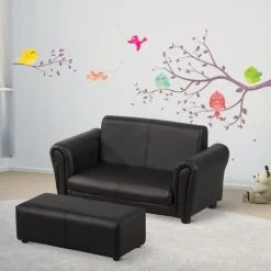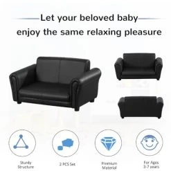 • Net Weight: 9kg • Sofa Weight Capacity: 60kg • Footstool Weight Capacity: 40kg • Sofa Dimension: 83L x 42W x 41H cm • Stool Dimension: 54L x 25W x 18H cm • Seat Size: 29W x 56D cm • Seat Height: 18cm • Suitable Age: 3-5 years old • Certification: BS5852 • Custom Label: 310-006BK