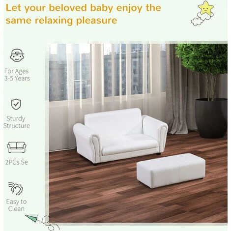 Why must adults always enjoy all the fun? The HOMCOM children’s 2 seater sofa set allows your children to enjoy the same relaxation, but the size is small and suitable for children! It features 2 seater, two-side armrest and a footstool, providing your children with ultimate comfort and security. The solid wood structure and soft padding can support a weight of 60 kg(sofa). Recommended for children from 3 to 5 years old. It is also a great place for your children and their friends to read, play and watch TV together. An ideal gift for your little ones in their childhood and will be a perfect decoration in the nursery or playroom.