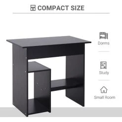 • Spacious build with a slide-out keyboard tray, two storage shelves and a large worktop provide large space