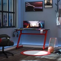 Transform your gaming time with this PC desk for gaming from HOMCOM. Made from particle board for a durable and reliable structure, the gamer desk features a large main worktop, a cup holder and a hanging hook, giving you everything you need to keep everything together. Steel legs keep the balance in check, and adjustable feet ensure this desk will be balanced even on unsteady ground. It’s finished with a cable organiser on the back so the wires keep untangled and out of your way. Specifications: