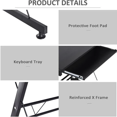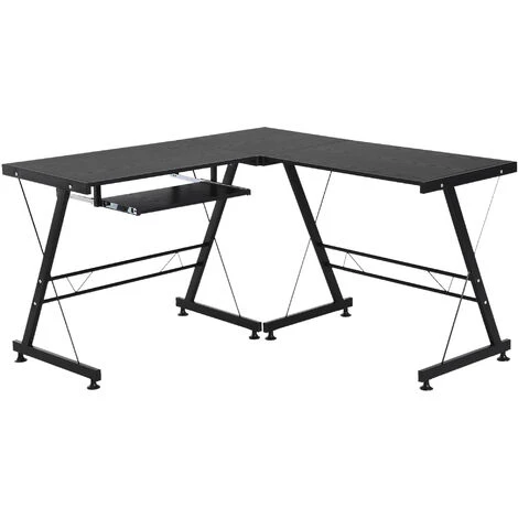 Never be stuck for a desk again thanks to this curved desk from HOMCOM. Made of Z-shape metal frame and solid MDF, the computer gaming desk supports up to 20kg. This computer desk features 2 large tabletops, a round corner desk and slide-out keyboard tray for enough workplace. Moreover, straight or L-shape fits in a variety of shaped spaces can meet your different requirements and adjustable feet pads keep stable. The modern desk is a superb addition for every home and office. Specifications: