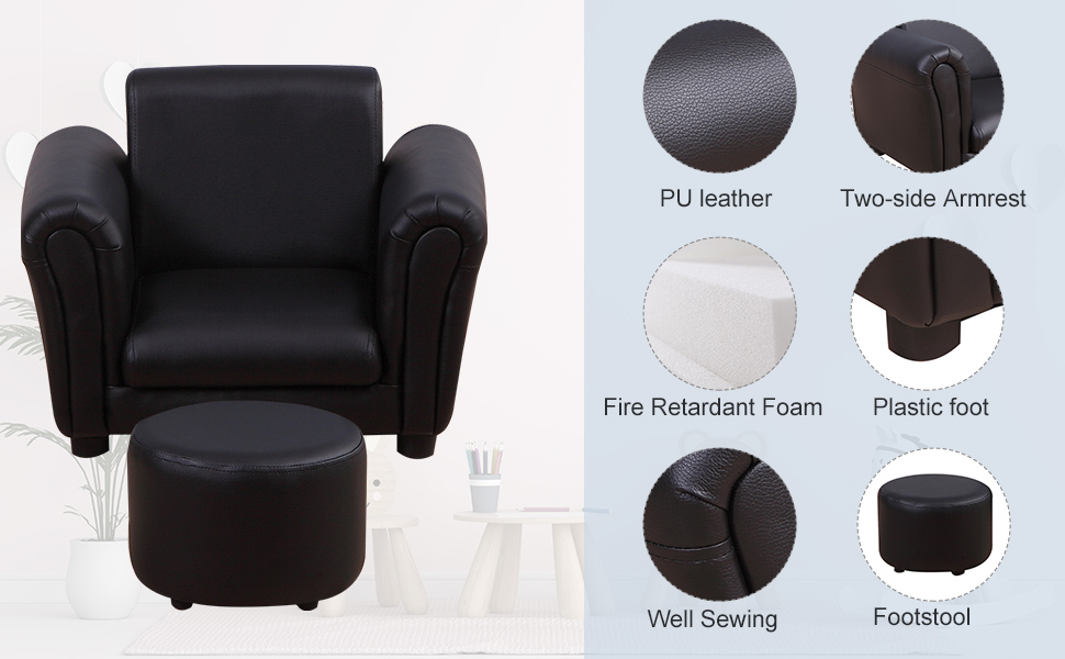 • PVC cover and filled with fire retardant foam offer comfortable sitting experience for your kid