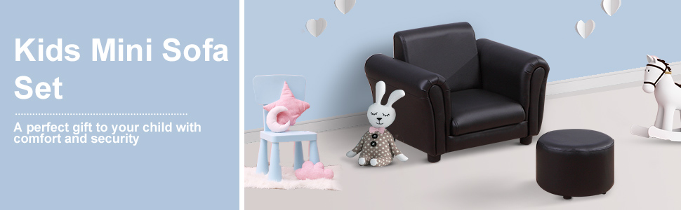 Why must adults always enjoy all the fun? The HOMCOM children’s sofa set allows your children to enjoy the same relaxation, but the size is small and suitable for children! It features an armchair of two-side armrest and a footstool, providing your children with ultimate comfort and security. The solid wood structure and soft padding can support a weight of 50 kg(sofa). Recommended for children from 3 to 5 years old. An ideal gift for your little ones in their childhood and will be a perfect decoration in the nursery or playroom.