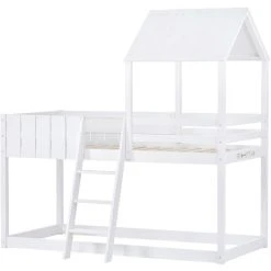 The Miller bunk bed is part of our kids bedroom furniture range. Inspired by the Scandinavian house bed frame style, the Miller kids bunk bed is perfect for a fun space for your children to sleep, play, and relax. The bottom bunk has been designed to be the perfect size for any child to enjoy and climb into without the help of an adult. The lower bed minimizes the risk of harm with less bed height to fall from. Please ensure the top bunk is not used by any child under the age of 8.