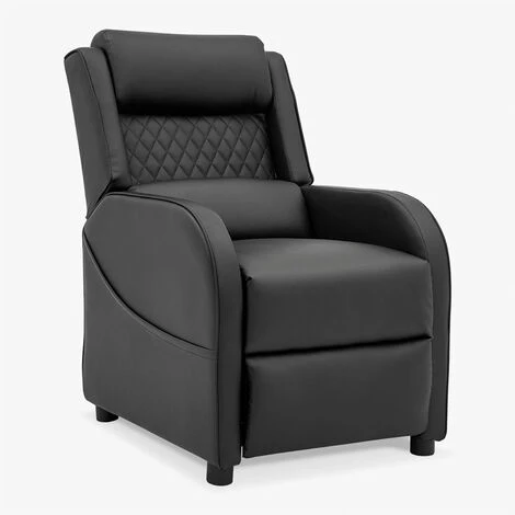 This is a manual recliner that reclines with weight. Please note this recliner does not lock in place. Relax and game at the same time in our recline position. Our recliner has been designed with padded armrests and padded headrest to add further comfort. Our recliner also features a side pocket where you can store and easily access essentials such as your remote control and headset, you will never lose them and always have them on hand!