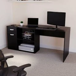 Home Discount offers this stunning new product with a modern stylish design, the Longton Adjustable Computer Desk. Featuring generously sized storage options such as sliding drawer, cabinet and two wide open shelves, this desk offers ample storage to house your computer and all your work and studying necessities. With a contemporary and exquisite wood design, this stunning desk won’t look out of place in even the most traditional of homes or offices, blending in seamlessly with all your existing decor. Moreover, you can adjust it`s positioning to fit your room setting.