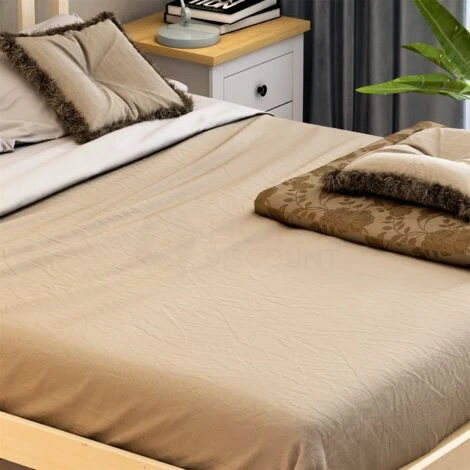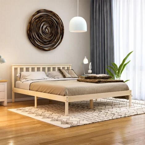 Home Discount offers this stunning new product with a modern stylish design, the Milan King Wooden Bed, Low Foot. Elevate your interior décor and inject luxury into your bedroom with this beautiful wooden bed frame. Included in the set are a sturdy and durable solid pine bed frame, gorgeous both headboard and footboard in a corresponding design. The simple, yet effective design allows light to pass through the headboard, showing off the wall behind to brighten up your space with an airy feel. This is perfect for smaller or darker spaces without much natural light, giving an illusion of space.
