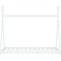 Create the ultimate hideaway in your children’s bedroom with our fantastic bed frame! The bed features novelty crossover framework inspired by the cool tipi style tents where you can hang bed curtains to create privacy for your kid. It can also be used as a reading nook or a play house for your child. Made of solid pine wood, this bed frame is exceedingly sturdy and durable. The strong slats offer the needed support and are highly comfortable. This bed frame is suitable for a mattress of 70 x 140 cm. Please note that delivery includes a bed frame only; a mattress and curtains are not included. The bed is easy to assemble. You can check our shop for the matching mattresses.