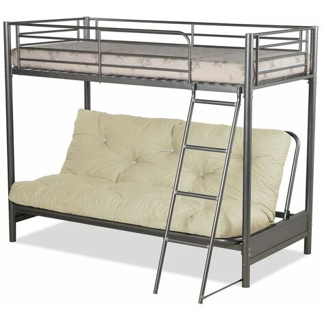 – Metal futon bunk bed in silver finish. Modern Design Bunk Bed with futon base and built in ladder