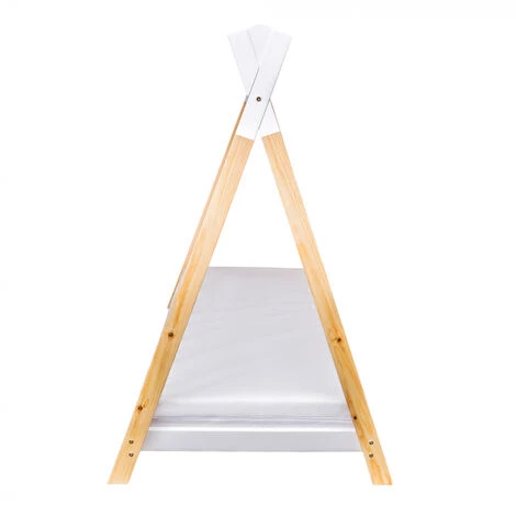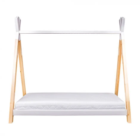 This teepee toddler bed with mattress comes with our spring mattress. The mattress contains a bonnell spring unit, encased in a breathable polyester fibre, which provides support and comfort. It is surrounded by a thermally bonded polypropylene cover with a quilted top for extra comfort which is breathable, and carries hypoallergenic properties. The mattress cover is water resistant and can be removed to wash in case of any accidents.