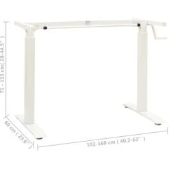 This desk frame, made of powder-coated carbon steel, is stable. It has an adjustable width from 102-160 cm and height from 71-113 cm to meet your specific needs. This frame features a hand crank for easy and quick adjustment. It can be used with your desktop to fit your workspace perfectly. This frame is suitable for 120-180 cm table width and 60-80 cm depth.