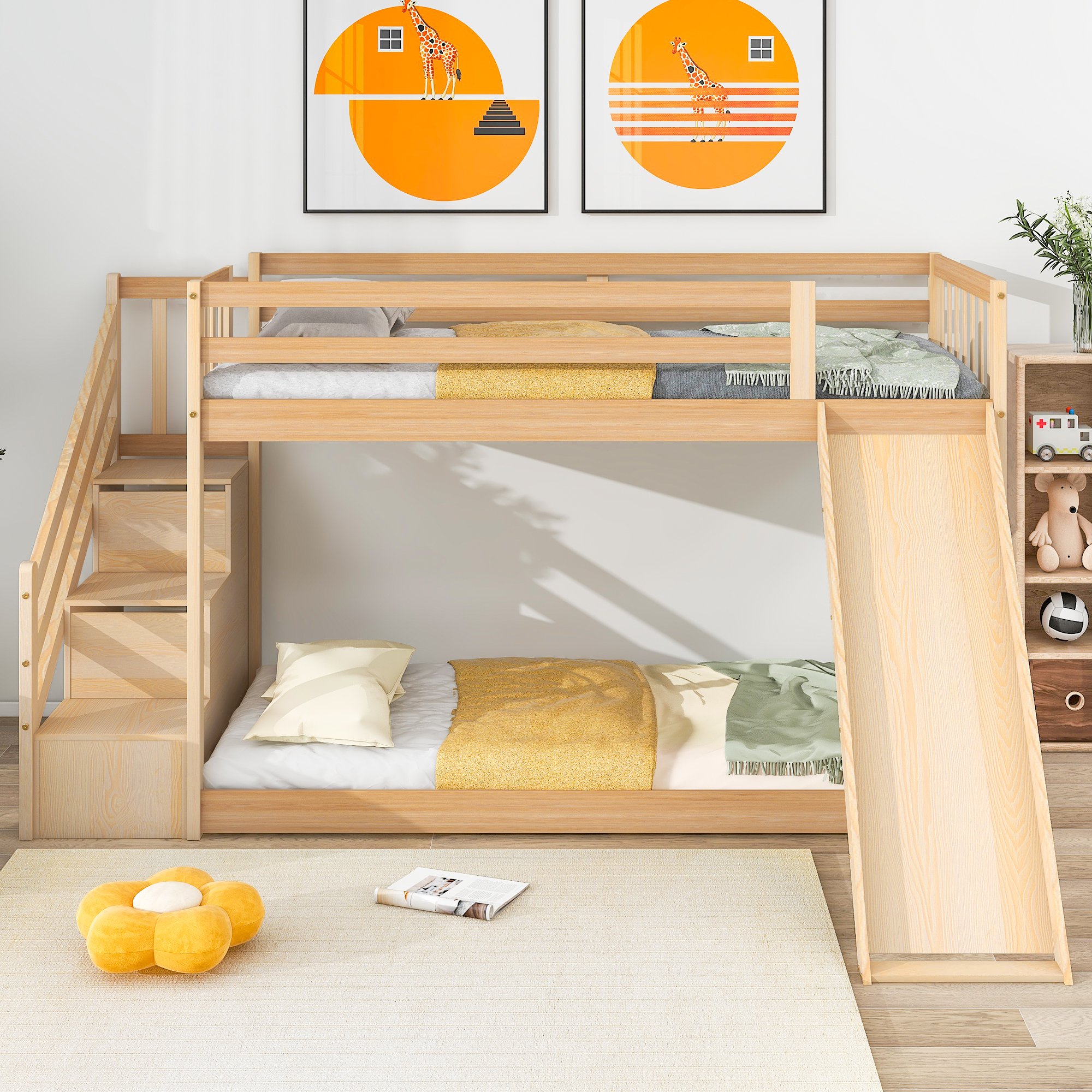 - Convenient stairs: Stairs with guardrails make access to the upper bunk easier and safer, providing enough safety and stability.