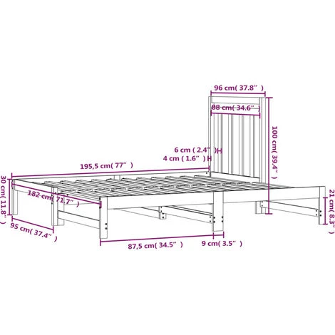 - Daybed dimensions (not extended): 195.5 x 95 x 30 cm (L x W x H)