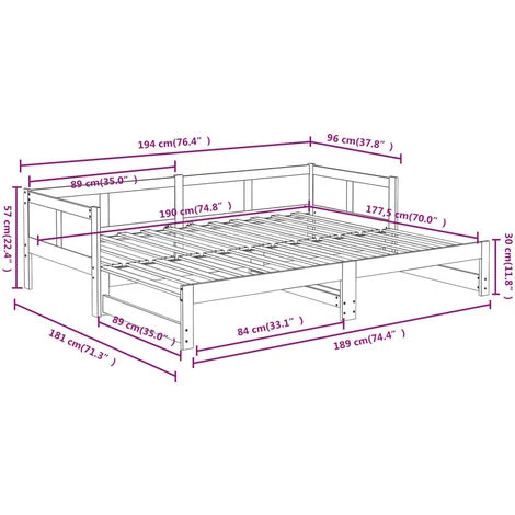 - Overall dimensions(not extended): 194 x 96 x 57 cm (L x W x H)