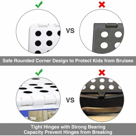 ăSecure Stool; and Non-slipă The running board has been approved by the EN14183 certificate. Features has improved the folding bar. The four super safe rounded corners protect your body from impact.Rubber feet can be found on the 4 corners of the step to maintain a fixed position and protect against slips and falls. All of these designs keep your kids safe. first.