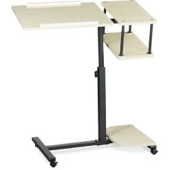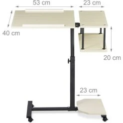 Work or surf comfortably from bed with this height-adjustable laptop stand! The side table features 2 separate extra-large surfaces that are rotatable and inclinable. The surfaces provide space for your notebook and a mouse, notes or a drink. The 4 wheels with brakes provide mobility and security.
