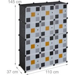 The individual plug-in shelving system is the ideal storage option for clothes, home textiles and other items. The shelving system made of plastic panels and plug-in connections allows you to build it up in height or width – as you wish. Thanks to the 2 clothes rails, bags, scarves and hats can be hung up neatly. The individual plug-in system is the ideal choice for anyone who has to move frequently or likes to rearrange things. The storage cupboard is versatile.