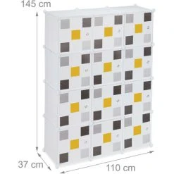 The individual plug-in shelving system is the ideal storage option for clothes, home textiles and other items. The shelving system made of plastic panels and plug-in connections allows you to build it up in height or width – as you wish. Thanks to the 2 clothes rails, bags, scarves and hats can be hung up neatly. The individual plug-in system is the ideal choice for anyone who has to move frequently or likes to rearrange things. The storage cupboard is versatile.