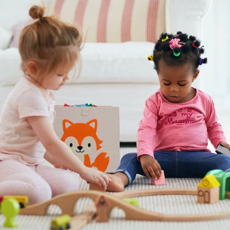 Toy Box with Cute Animal Motif– Useful organiser for the children’s room- Loop for pulling out of cube shelves- Foldable children’s storage box without lid- Storage box with cute fox motif- Perfect for toys, stuffed animals, clothing, etc.