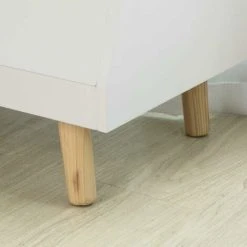 - Made of high quality MDF in white lacquer. The legs are made of solid wood with varnished coating.
