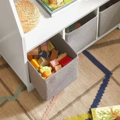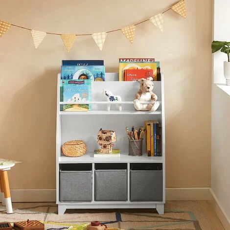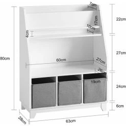 Modern design children storage shelf will blend perfectly with any decor. It will keep your room nicely organized.