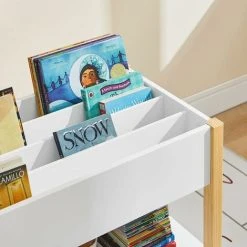 The box is divided into 4 storage compartments by 3 panels, so children’s books can be sorted by topic.