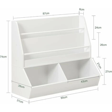 2 tiers shelf on the top are ideal for storing books, flexible for books of varying size and thickness. 2 round cross bars prevent the books from falling off.