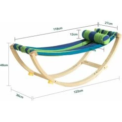 This hammock specially designed for children offers a rocking movement.With a headrest which is removable. The girl on the pictures is 1.08m in height.