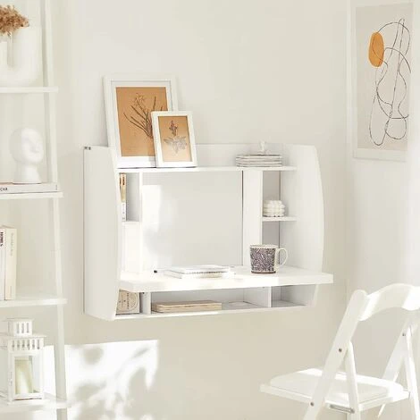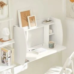 - Great design wall mounted desk with storage shelves and drawers provides working space and extra plenty of storage space.