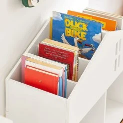 Modern design children storage shelf will blend perfectly with any decor. It will keep your room nicely organized.