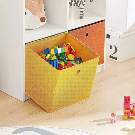 Made of high quality MDF in white lacquer. The 2 drawers are made of non-woven fabric—one is yellow and one is orange.