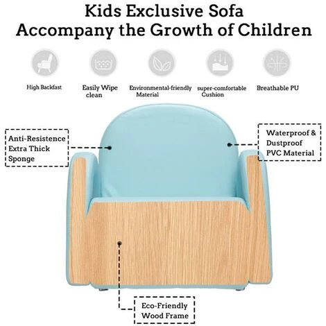 design will attract children’s attention. High resilience sponges provide a more comfortable feel. PVC makes the sofa easy to clean. It must become the best place for them to watch movies, play games, read books, and more!