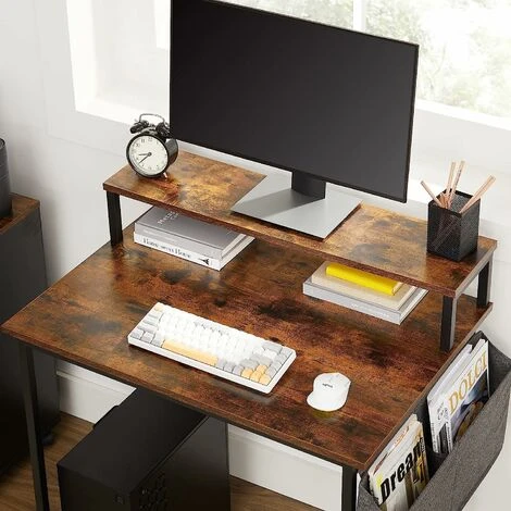 Monitor Stand or Storage Shelf?Raise dual monitors to your eye level for multitasking, or display some plants and trinkets on the top shelf. | Extra X-BarsX-bars are added to the back of this computer desk to add stability and ensure no wobbling. | Keep It BalancedThis writing desk comes with adjustable feet to compensate for the unevenness on the floor. |