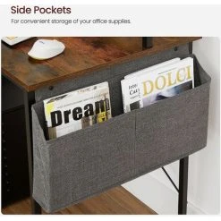3.Left or Right? You have the final say. Simply install the fabric bag on the left or right of this computer desk as you like, then it’s ready to house your notepad, phone, sticky notes, and USB drive, keeping all your work necessities at hand